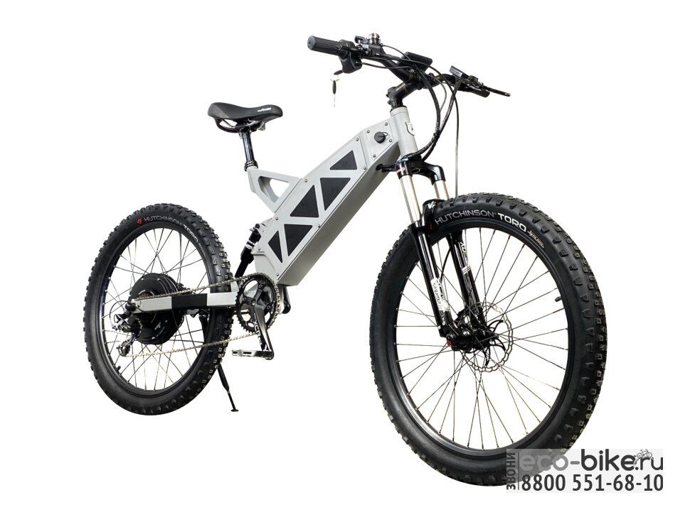 • оснащен 1500 ваттным мотором, разгоняющий велосипед до 60 км/ч;